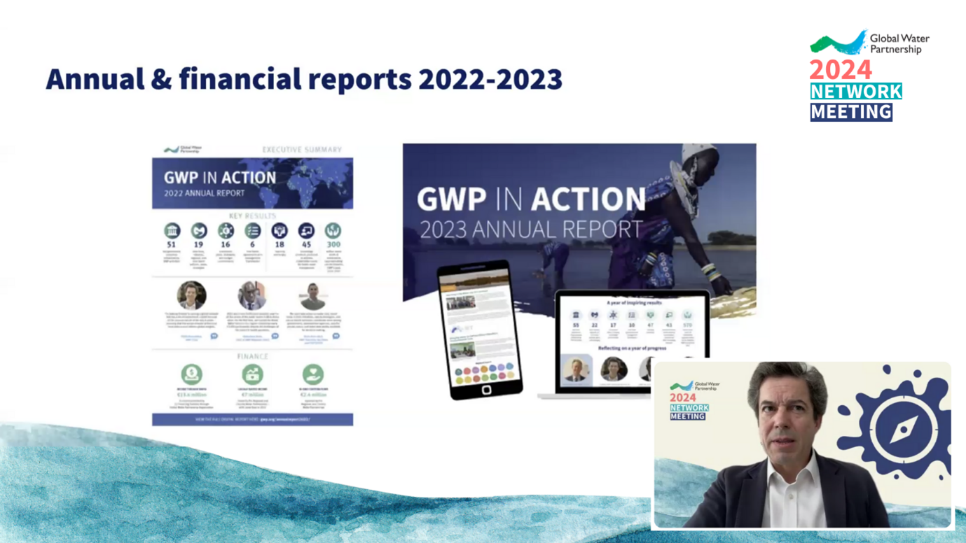 GWP Chair Pablo Bereciartua sharing GWP’s Annual and Financial reports 2022-2023