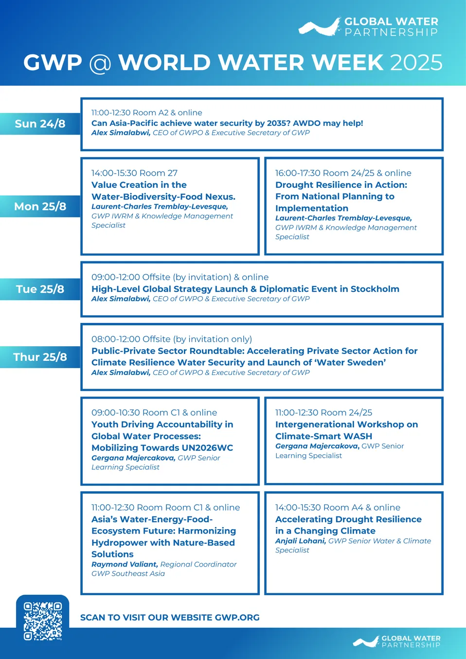 World Water Week 2025 was held in Stockholm, Sweden, and online, from 24–28 August, under the theme “Water for Climate Action.”