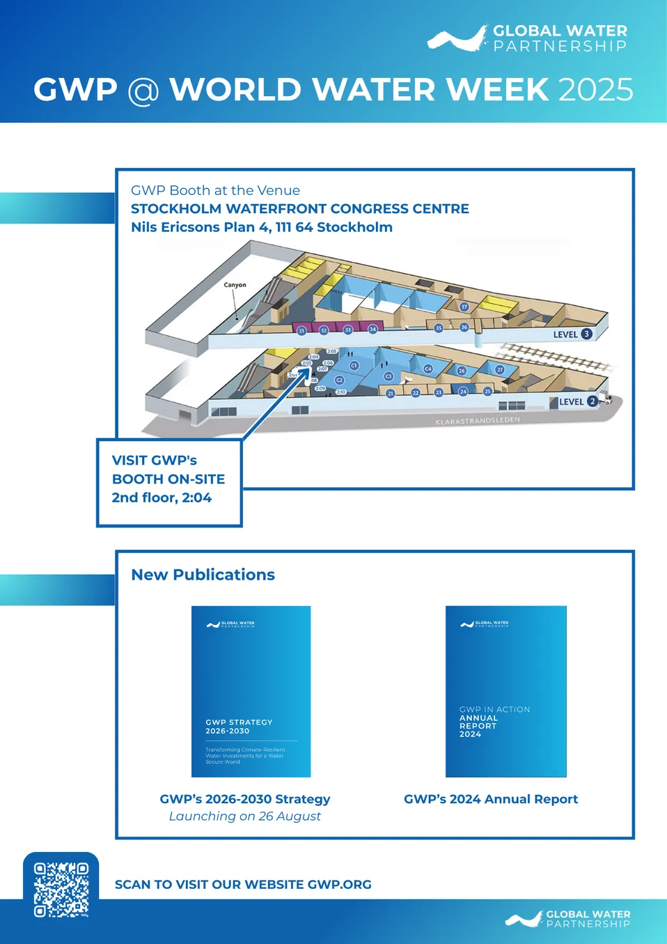 GWP had a Booth onsite throughout World Water Week (second floor, D:206). New and existing partners alike stopped by to learn more about our new Strategy 2026–2030, the Global Transformation Agenda on Water Investments, and what’s happening across the GWP Network.